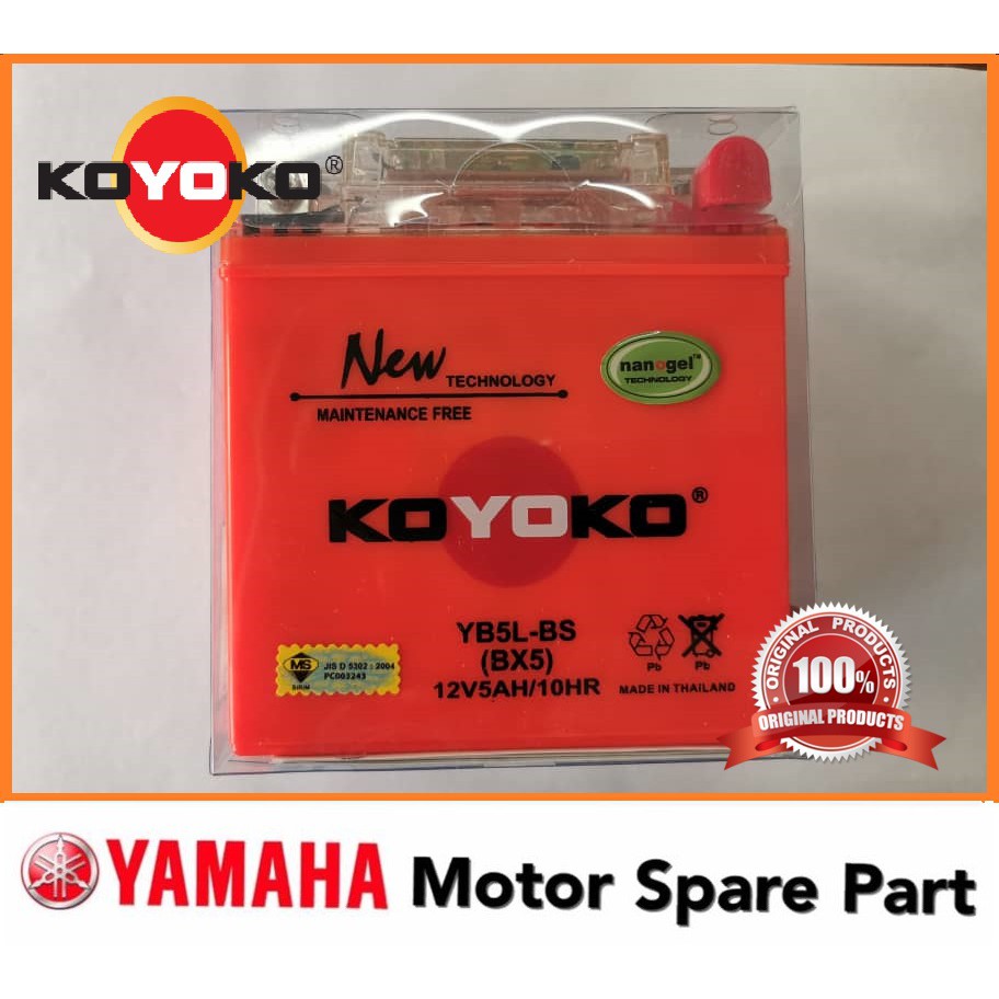 Weida Bateri Motosikal Yb5L Starter Ex5KrissEgoLc135 V1E-BonusNouvo SSrl110 Koyoko Bateri Motorsikal. KOYOKO is a Malaysia-based marketing company focus on South-East Asia market for our own manufactured GEL NANOGEL motorcycle batteries. Ok today ak br terima parcel from lazada iaitu bateri moto brand Koyoko Nanogel Maintanence Free Battery YTZ5S.